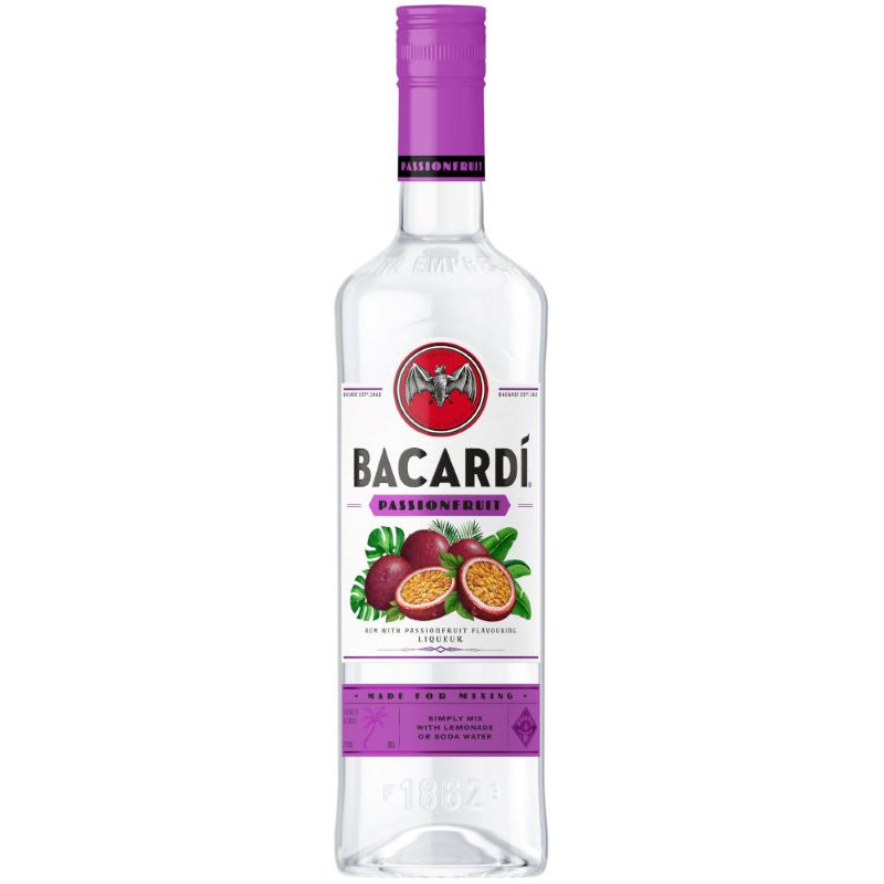 Bacardi Passionfruit is een fruitige rumvariant waarin de lichte, herkenbare Bacardi-rum wordt gecombineerd met het exotische aroma van passievrucht. Het smaakprofiel wordt gekenmerkt door frisse, tropische fruittonen met een lichte zoetheid en een zachte, soepele afdronk. De basis van witte Bacardi-rum zorgt voor een helder en toegankelijk karakter, waardoor de passievruchtaroma’s goed tot hun recht komen zonder te overheersen. Bacardi Passionfruit is bijzonder geschikt voor mixdranken en cocktails, bijvoorbeeld met tonic, frisdrank of vruchtensap, maar kan ook puur of met ijs worden gedronken. Door het frisse en tropische karakter is deze rumvariant vooral populair bij zomerse gelegenheden en liefhebbers van fruitige dranken.
