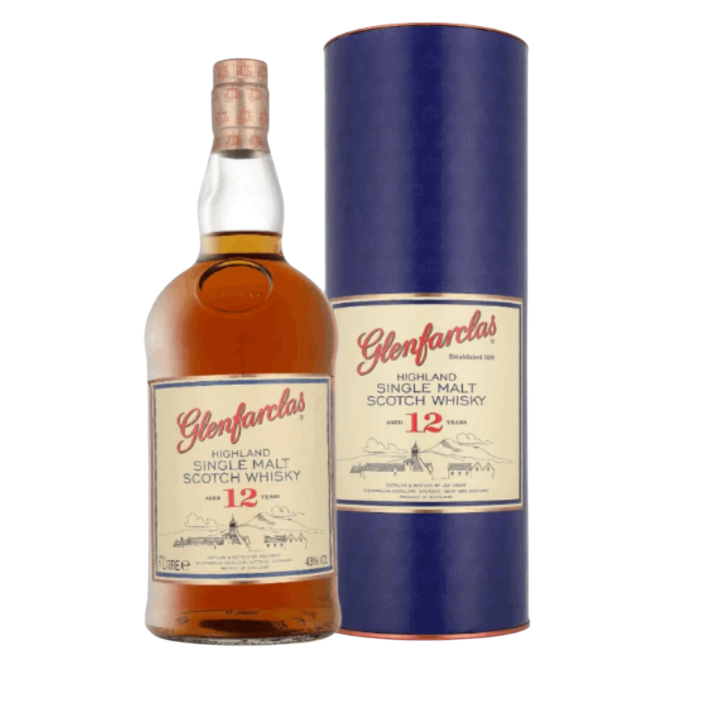 Glenfarclas Highland Single Malt 12 Years 100cl is een klassieke Highland whisky die volledig rijpt in Oloroso sherryvaten, wat zorgt voor een rijk en traditioneel smaakprofiel. In de geur en smaak komen tonen van gedroogd fruit, sinaasappelschil en honing naar voren, aangevuld met karamel, vanille en een lichte nootachtige toets. De invloed van de sherryvaten geeft daarnaast accenten van rozijnen en zachte chocolade, terwijl subtiele eik voor balans en structuur zorgt. De whisky heeft een ronde, volle body met een warme en licht kruidige afdronk. Het 1 liter formaat maakt deze expressie ideaal voor liefhebbers van klassieke sherry-gerijpte Highland single malts.