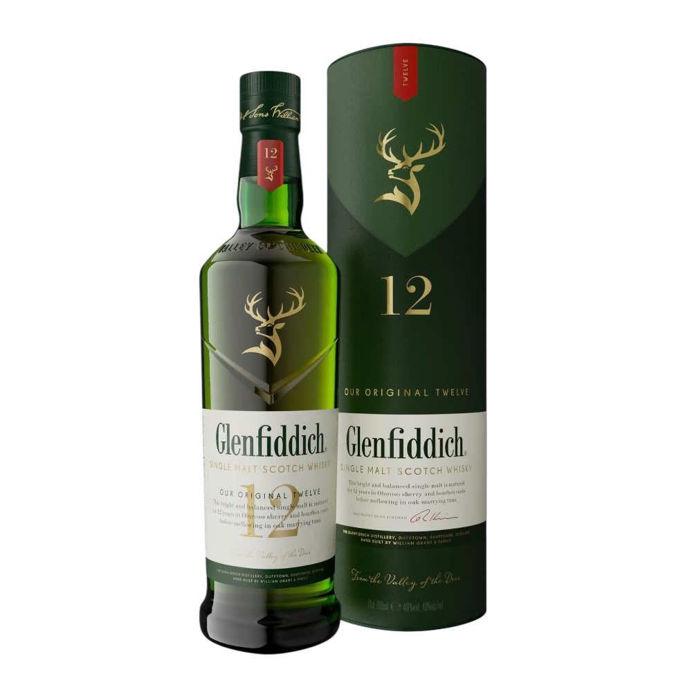 Glenfiddich 12 Years Old is een klassieke Schotse single malt whisky die wereldwijd bekendstaat om zijn frisse en toegankelijke karakter. Deze whisky rijpt minimaal twaalf jaar in een combinatie van Amerikaanse en Europese eikenhouten vaten, wat resulteert in een elegant smaakprofiel met tonen van peer, groene appel en lichte vanille. In de smaak is Glenfiddich 12 soepel en evenwichtig, met een zachte moutigheid en een frisse afdronk waarin subtiele houtinvloeden naar voren komen. Door zijn toegankelijke stijl is deze single malt geschikt voor zowel beginnende whiskyliefhebbers als voor ervaren drinkers die een verfijnde, ongecompliceerde whisky waarderen. Glenfiddich 12 Years Old kan puur, met ijs of met een scheutje water worden gedronken.