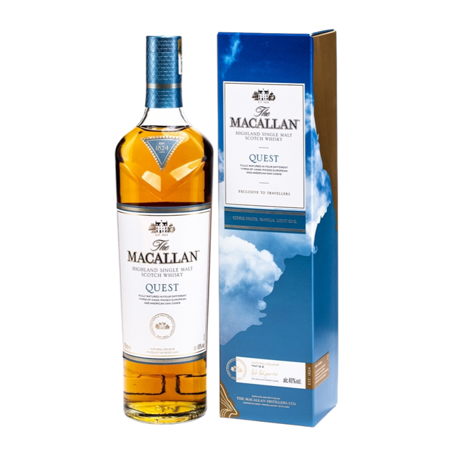 The Macallan Quest 100cl is een Speyside single malt die is samengesteld om een toegankelijk, fris en toch gelaagd Macallan-profiel te laten zien in een royale 1 literfles. De whisky rijpt in een combinatie van verschillende vattypen, waaronder ex-bourbonvaten en sherry-gekruide eikenhouten vaten, wat zorgt voor een duidelijke balans tussen fruit en zachte houtinvloed. In de geur en smaak komen vooral citrus en rijpe appel naar voren, met romige vanille, karamelachtige zoetheid en een warme toets van eikenhout en milde kruiden. In de afdronk blijven subtiele tonen van rozijn, vanille en lichte specerijen hangen, waardoor hij zowel puur als met een klein scheutje water prettig doordrinkbaar blijft. Een logische keuze als je een elegante Macallan zoekt met nadruk op fris fruit, vanille en zachte kruidigheid in plaats van zware sherry-dominantie.